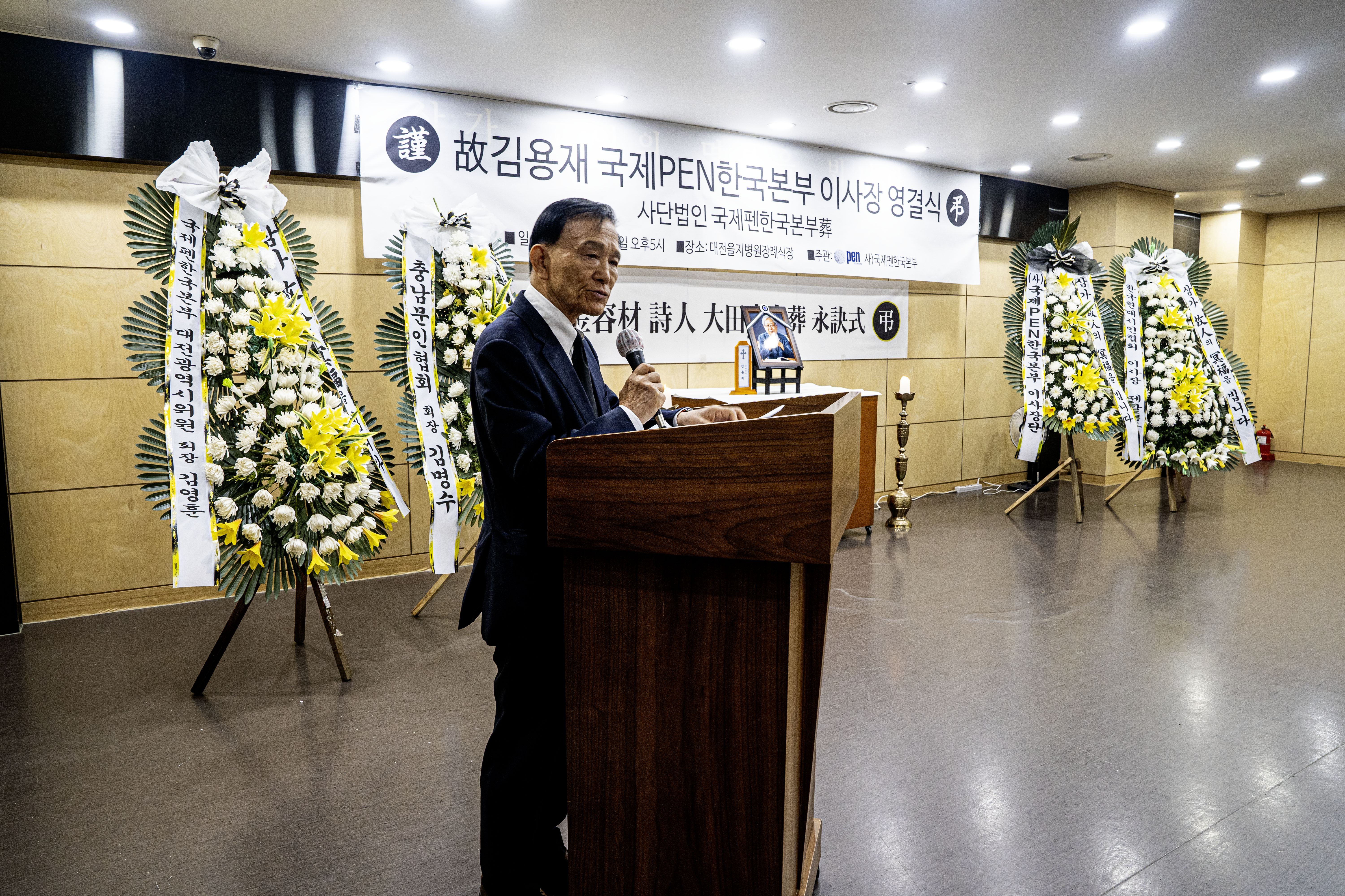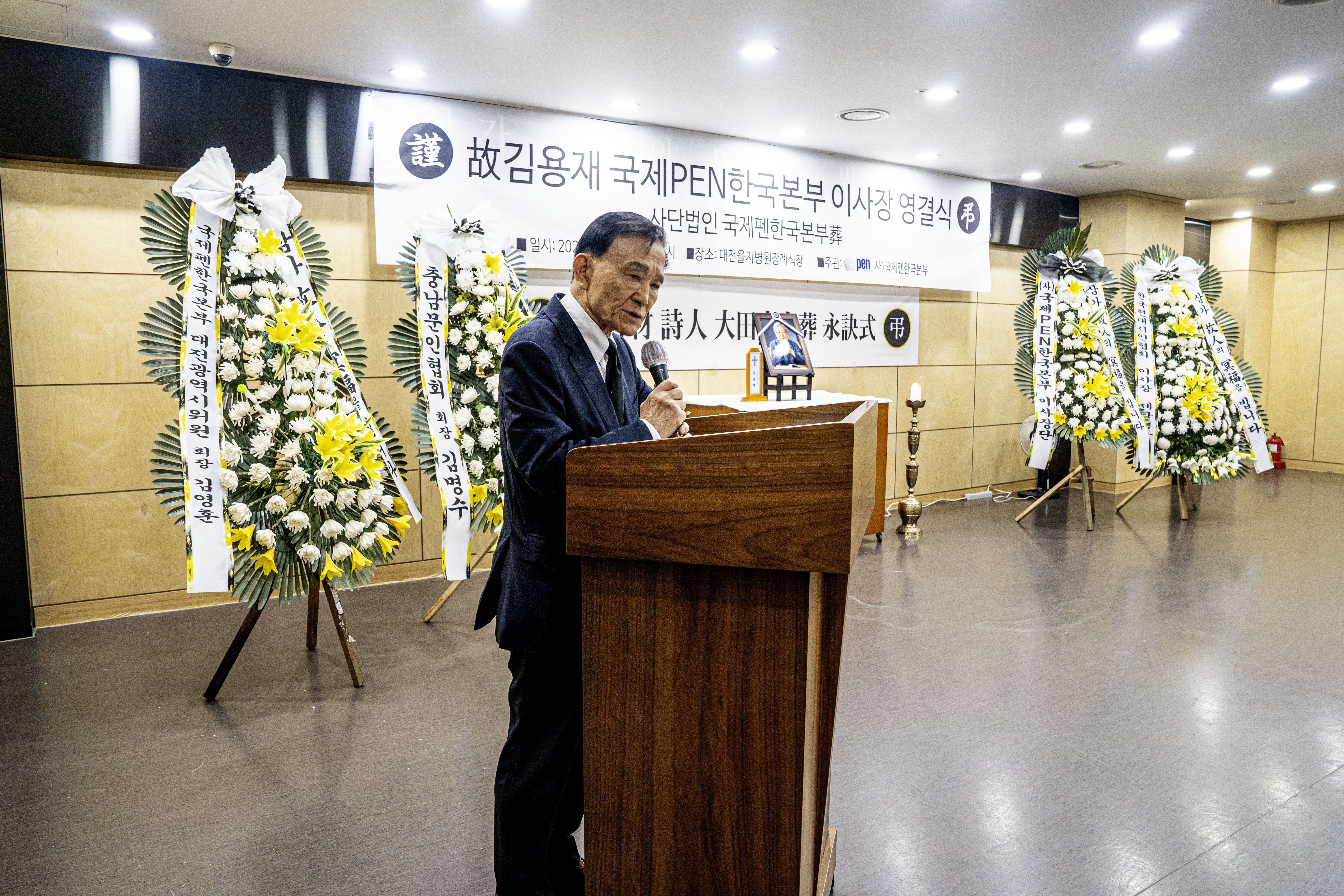 고인께서 한국현대시인협회 이사장을 역임하고 평의원으로 계시기 때문에 한국현대시인협회葬으로 모시도록 되어 있으나 현직에 계신 국제PEN본부葬으로 모시기로 한다