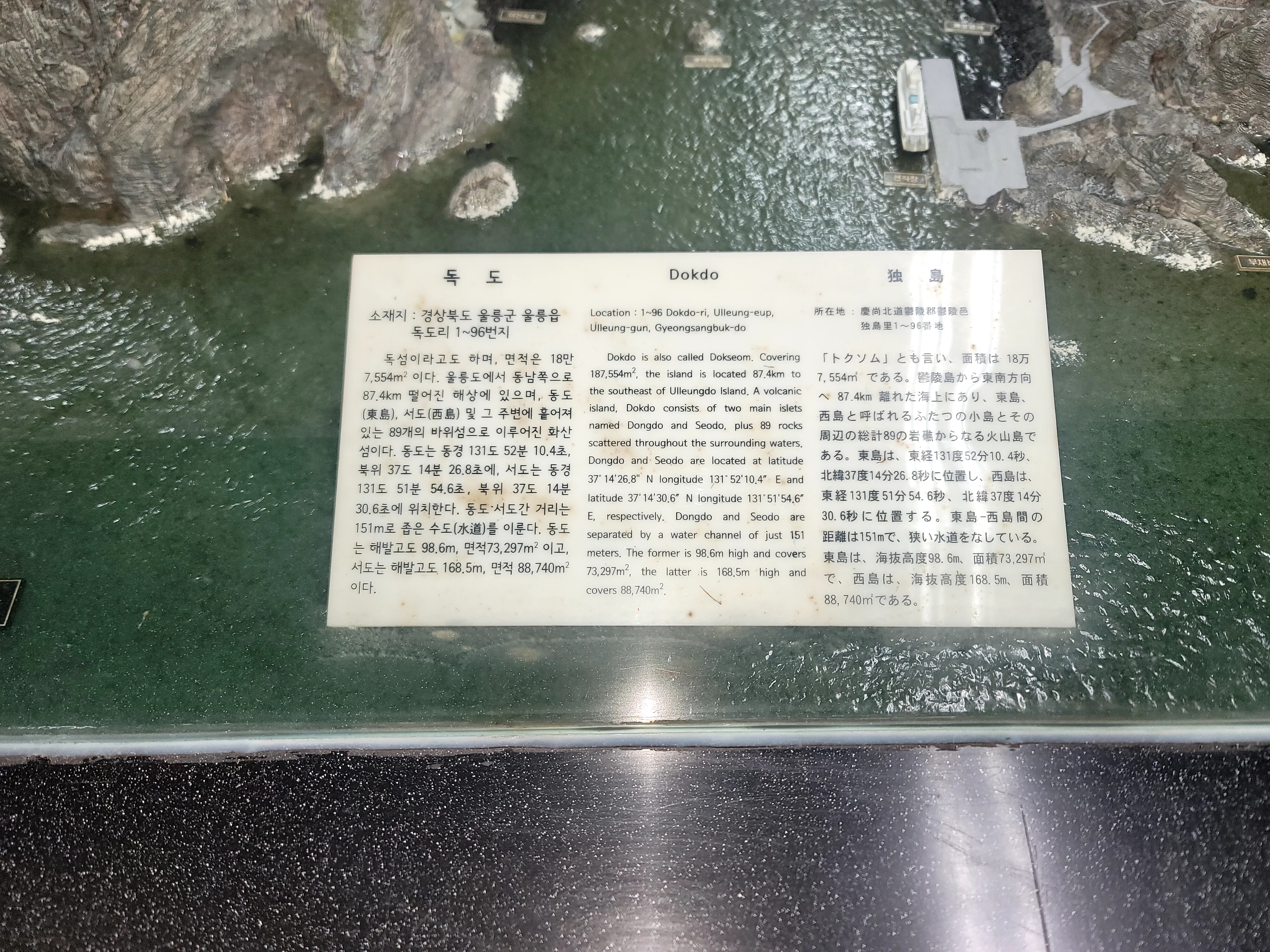 설치된 독도 모형이 제법 상세하게 잘 제작되어 있다 다만 안내판 설명문이 오래되어 정비가 필요하다는 생각은 든다