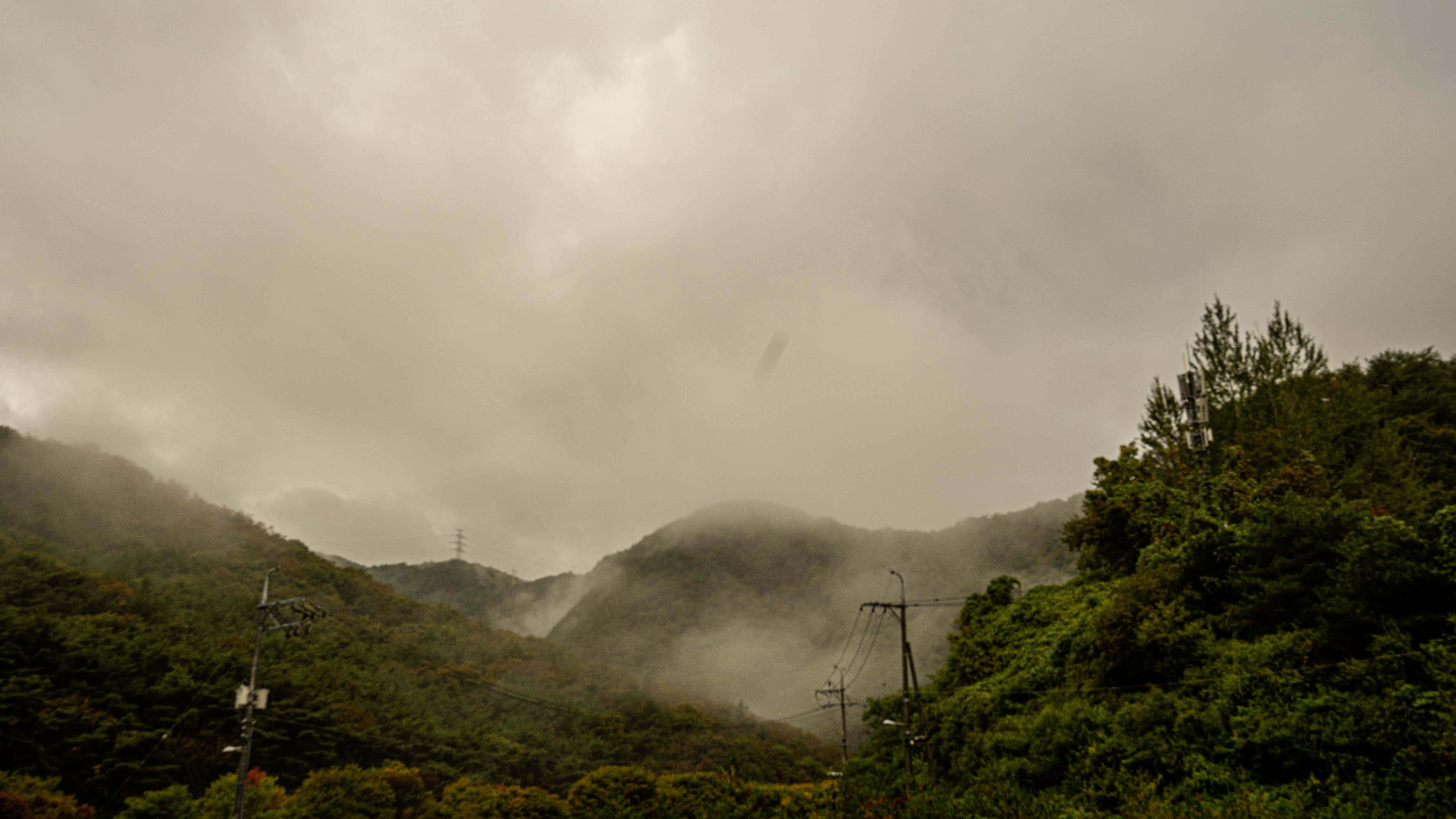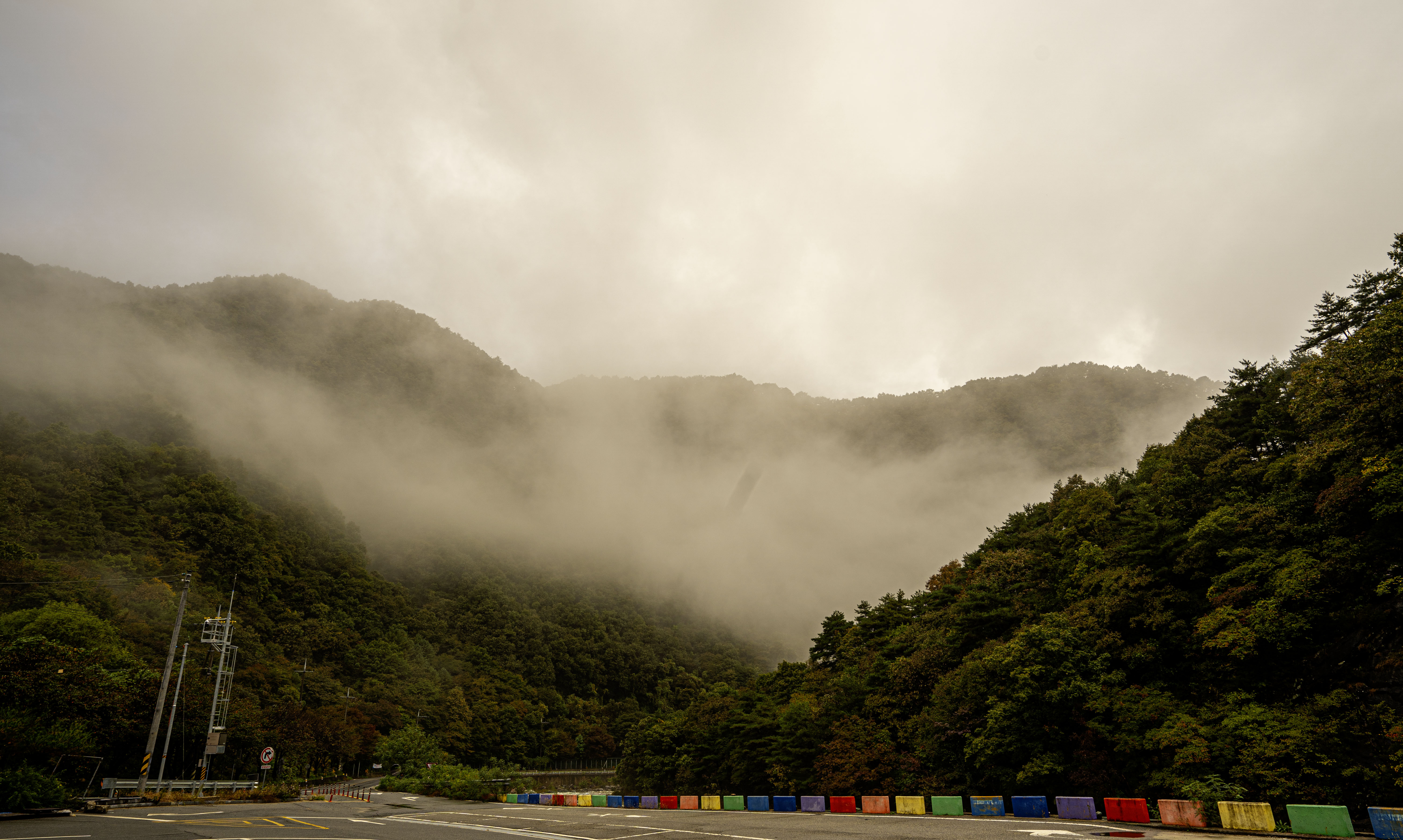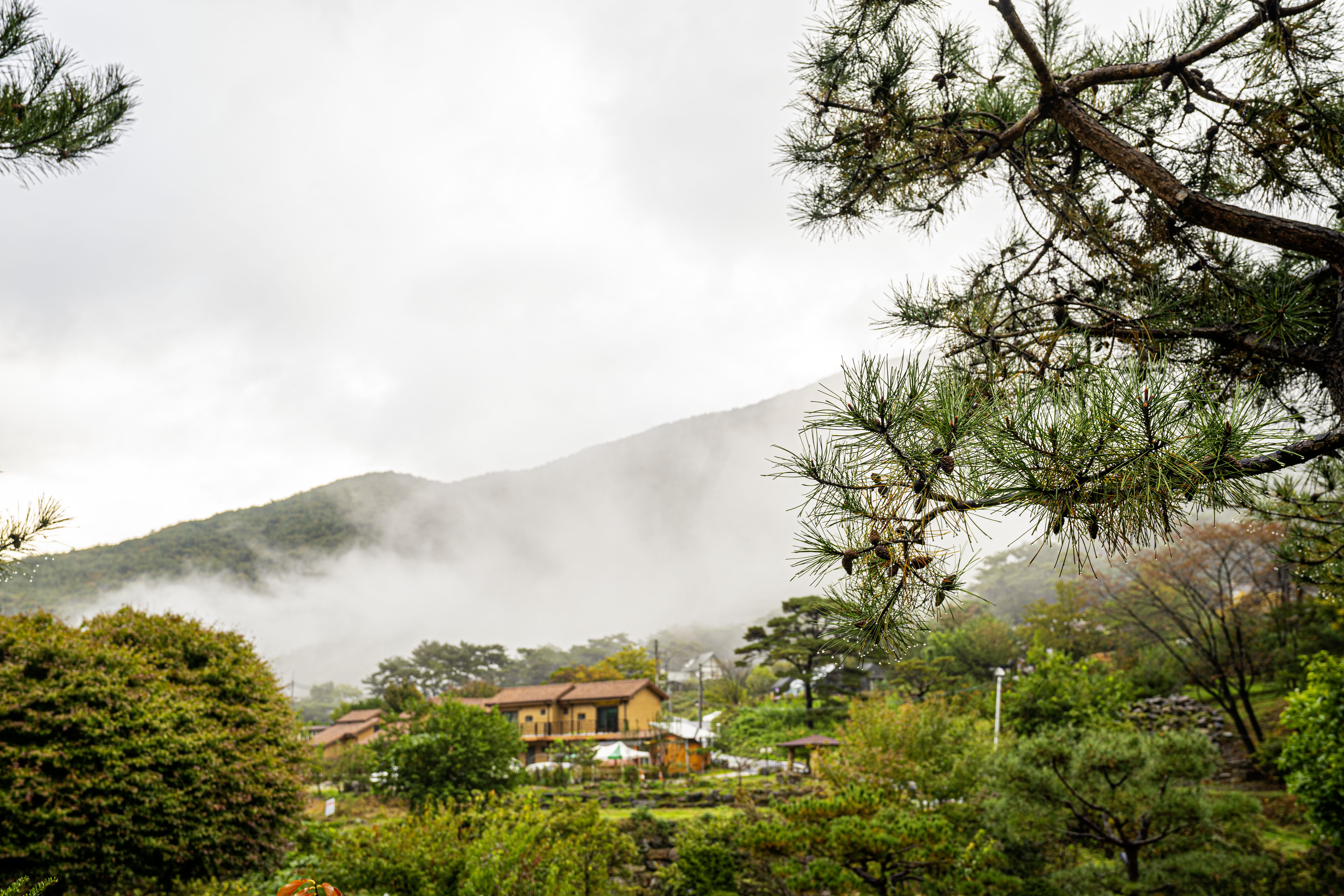 풍경 중 아침 안개가 그리는 안개 풍경이 한 몫이다.