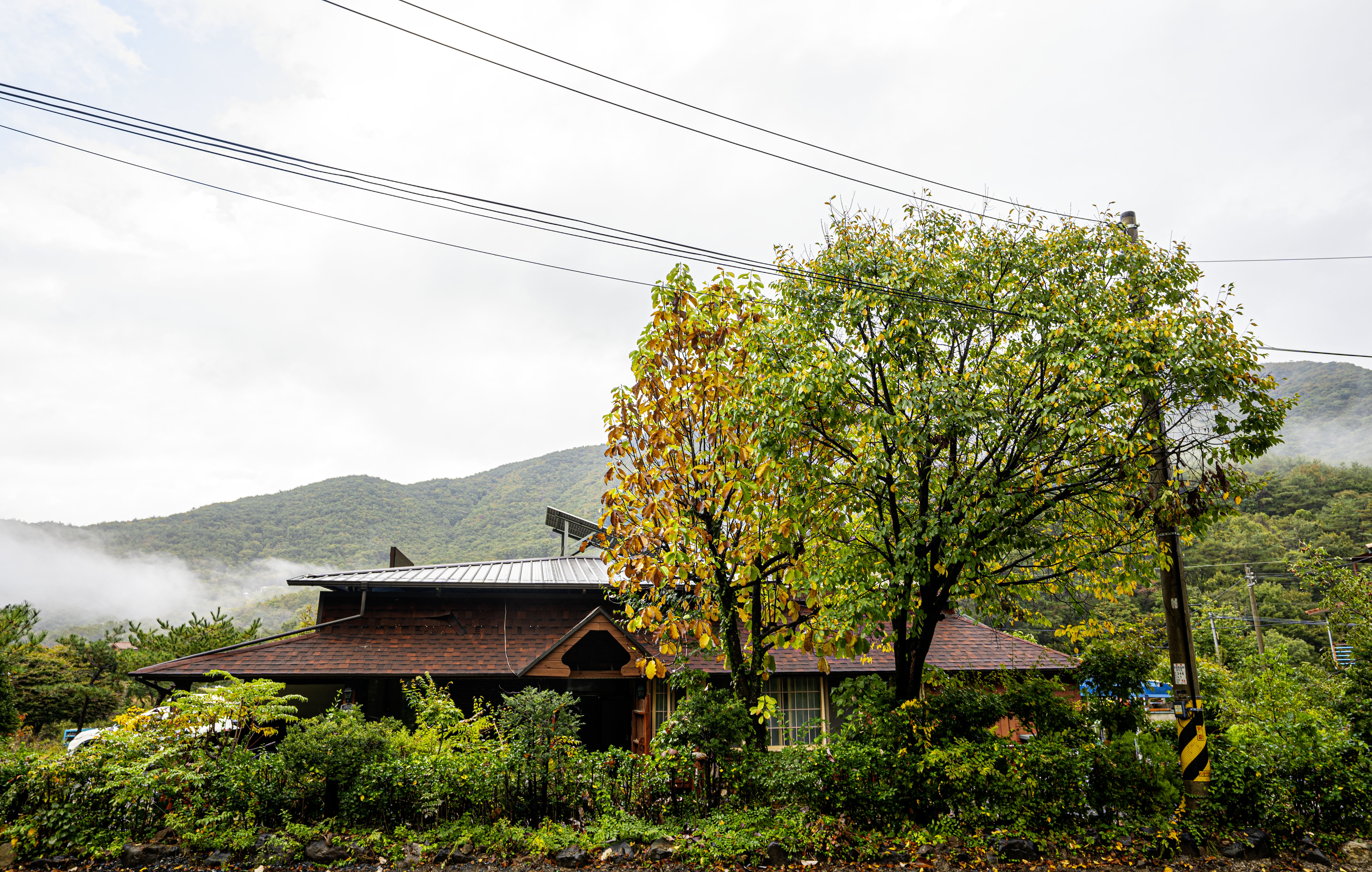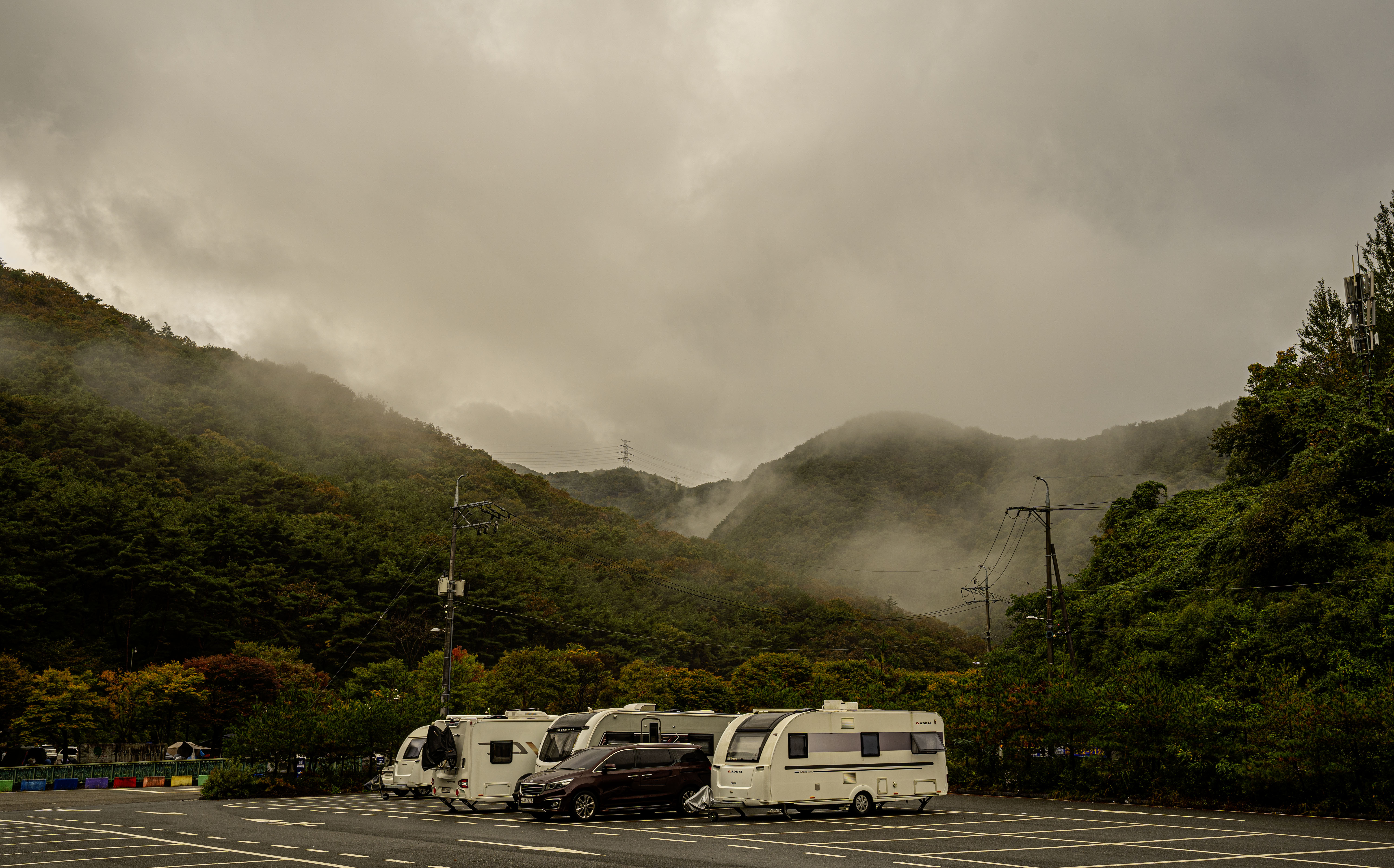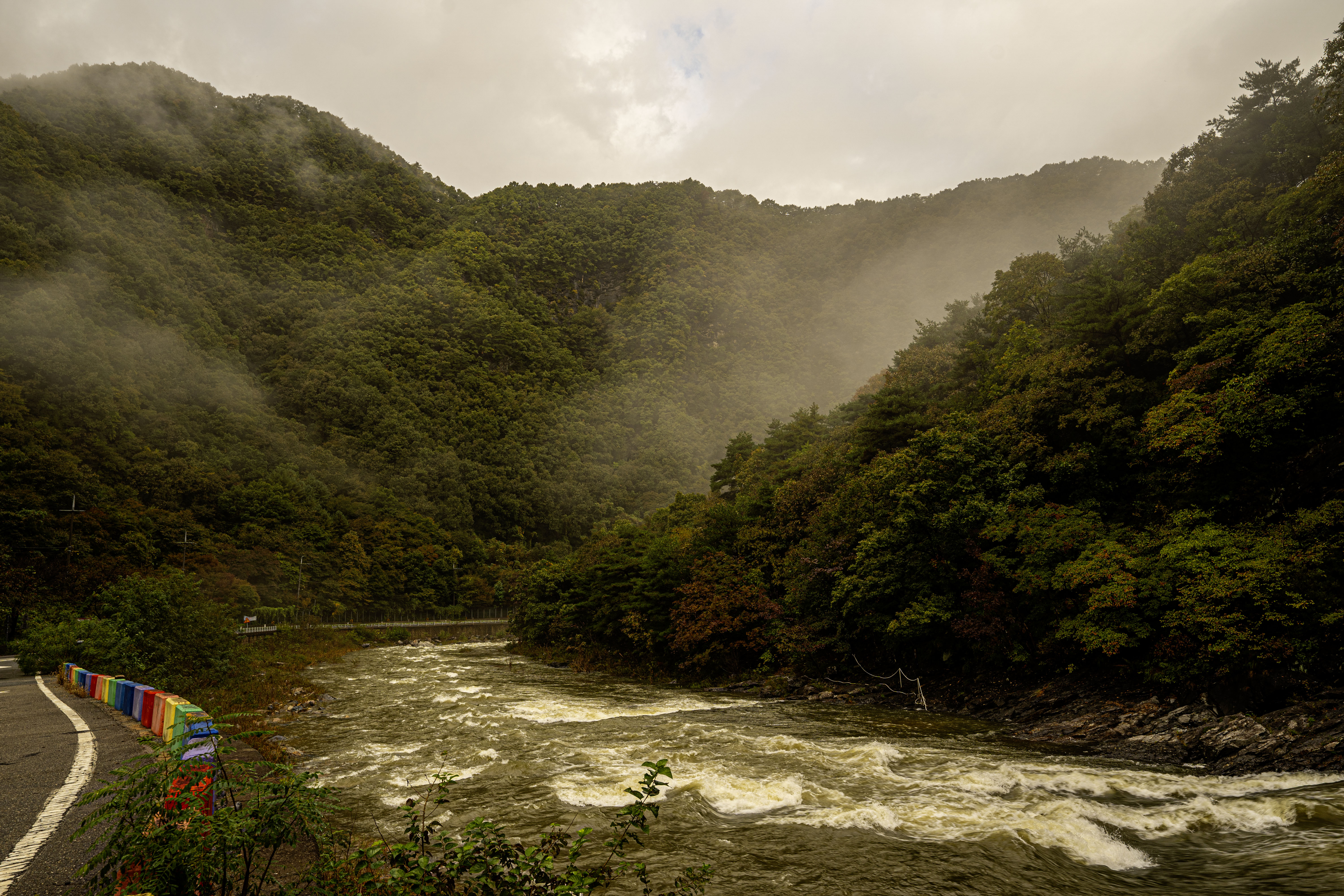 풍경 중 아침 안개가 그리는 안개 풍경이 한 몫이다.