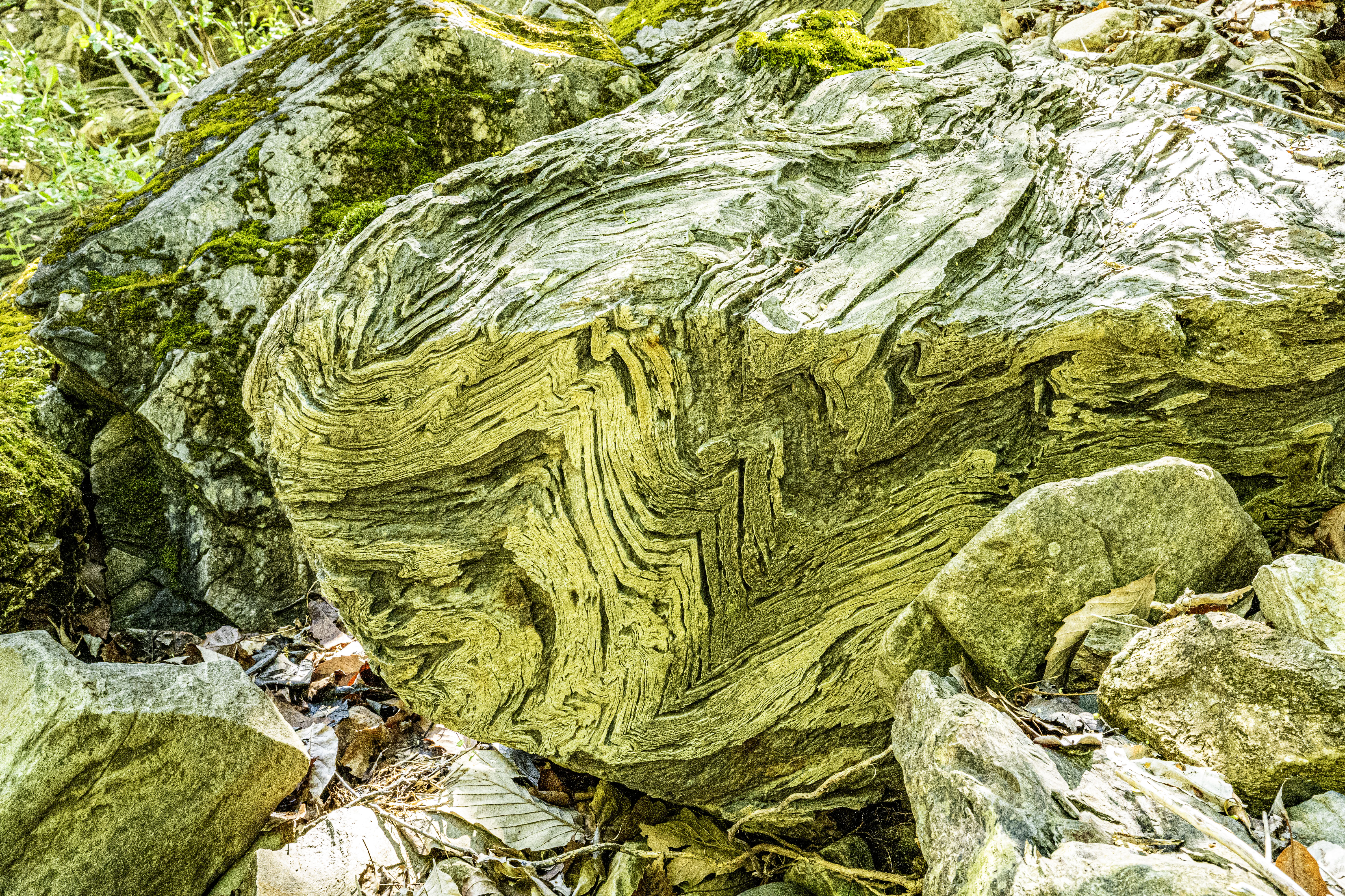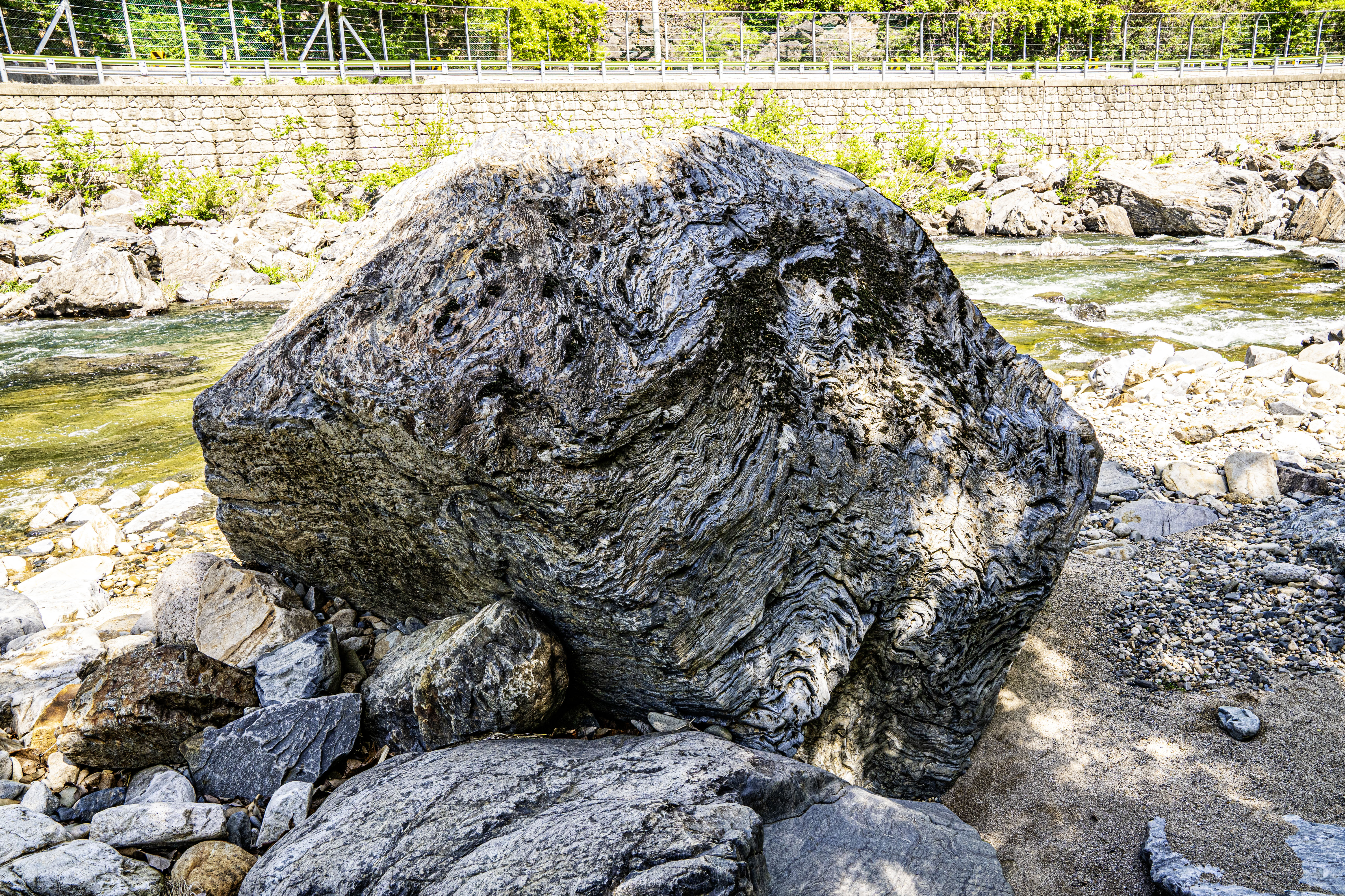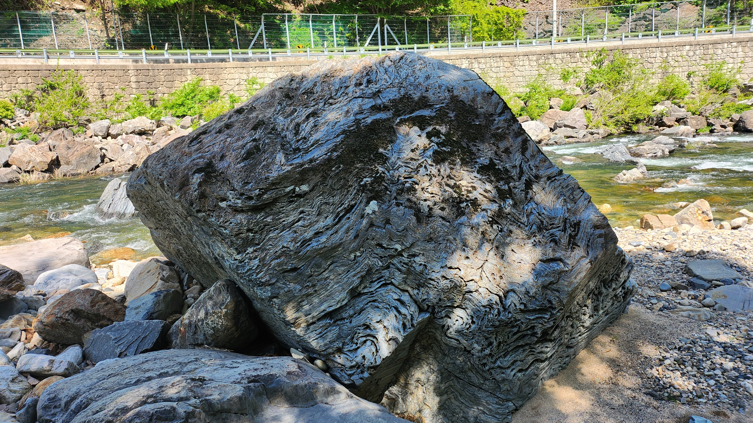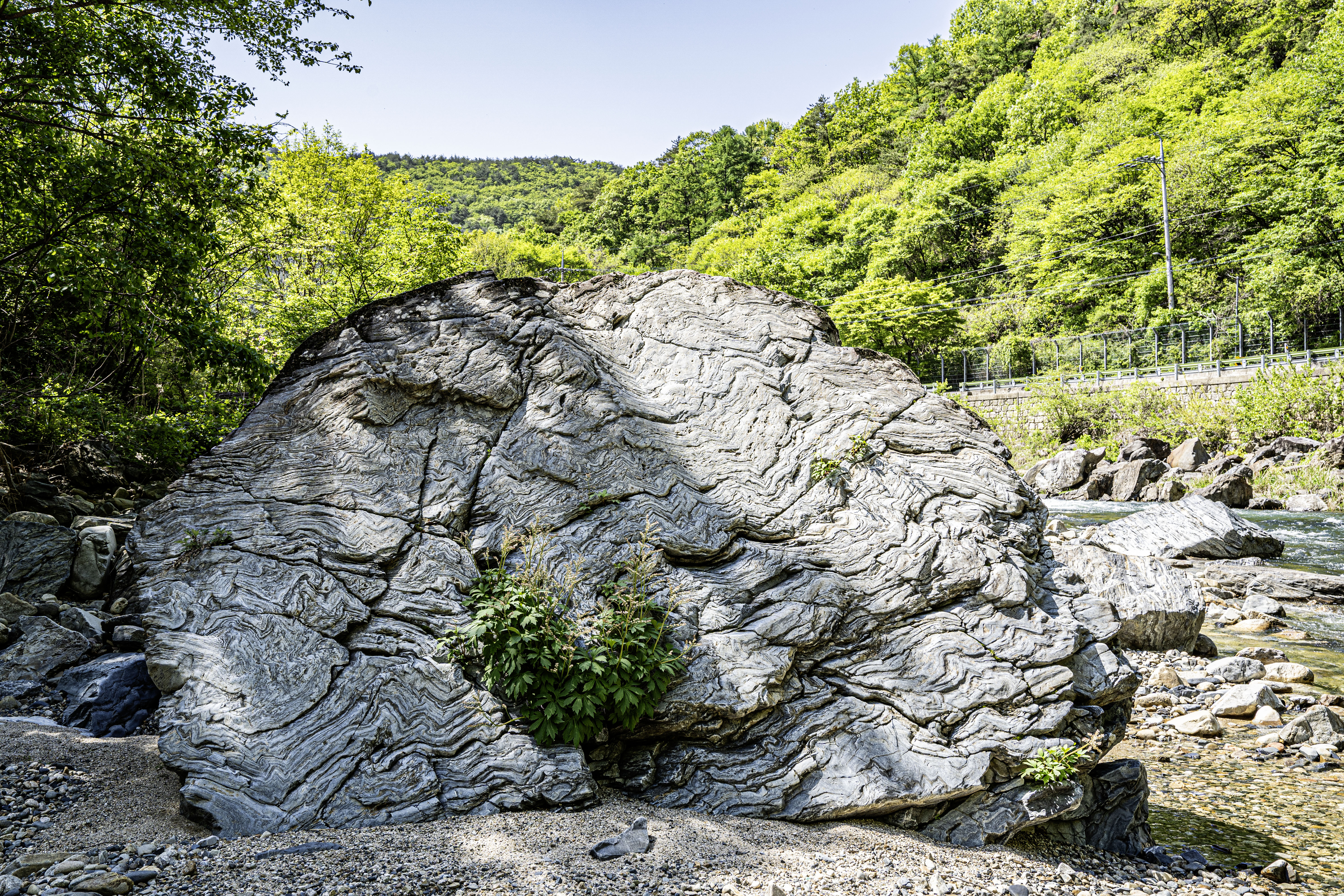 검은 석질에 선암계곡의 암벽처럼 직각으로 떨어지는 벼랑과 거세게 몰아치는 물길을 바쳐주는 든든한 암벽을 닮은 토파석은 산 높고 물 깊은 낭떠러지 잠(岑)자를 대변해 주듯 상산암 중선암 하선암을 이룬 대잠(大岑)리 지명에 걸맞다