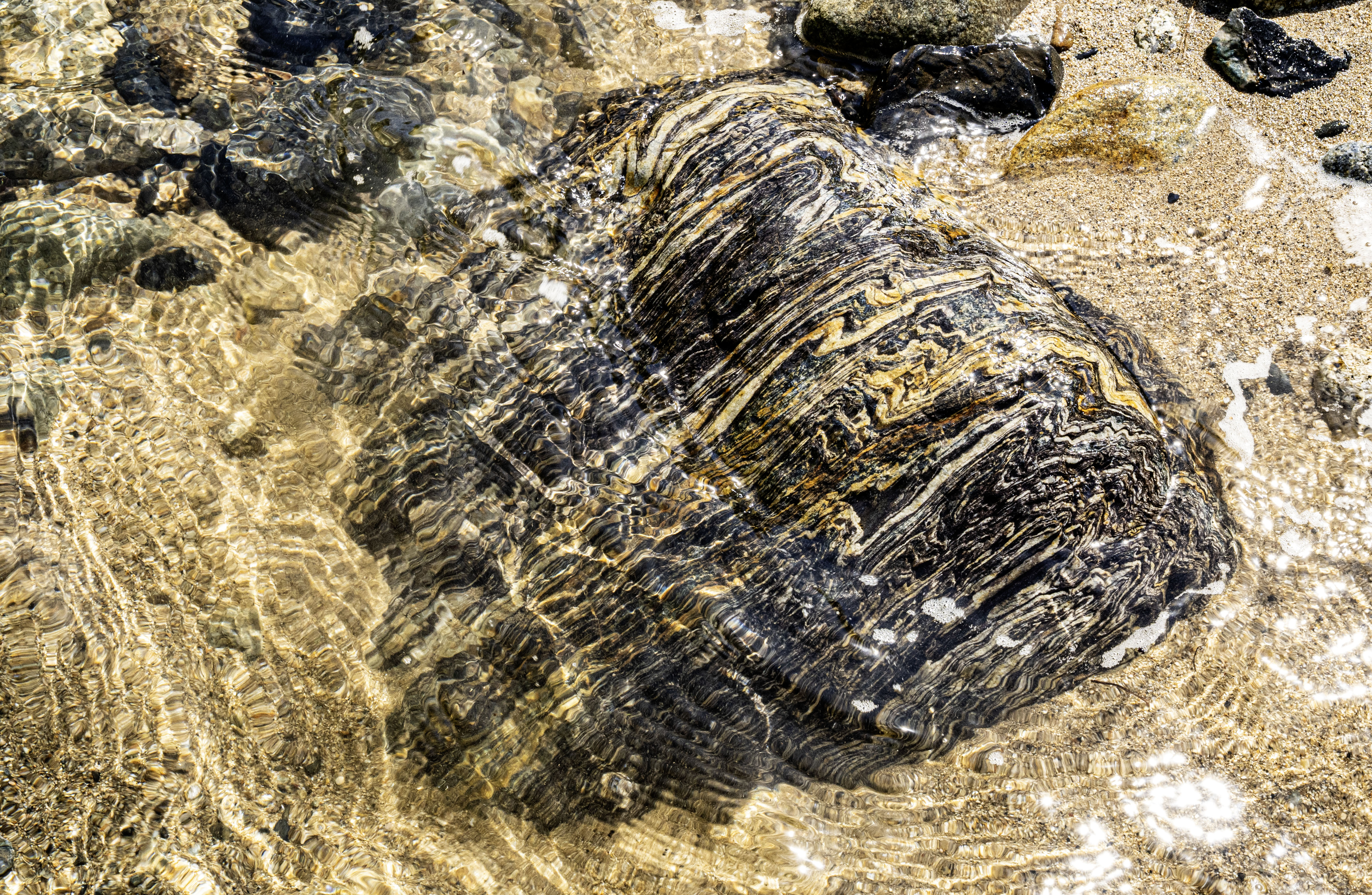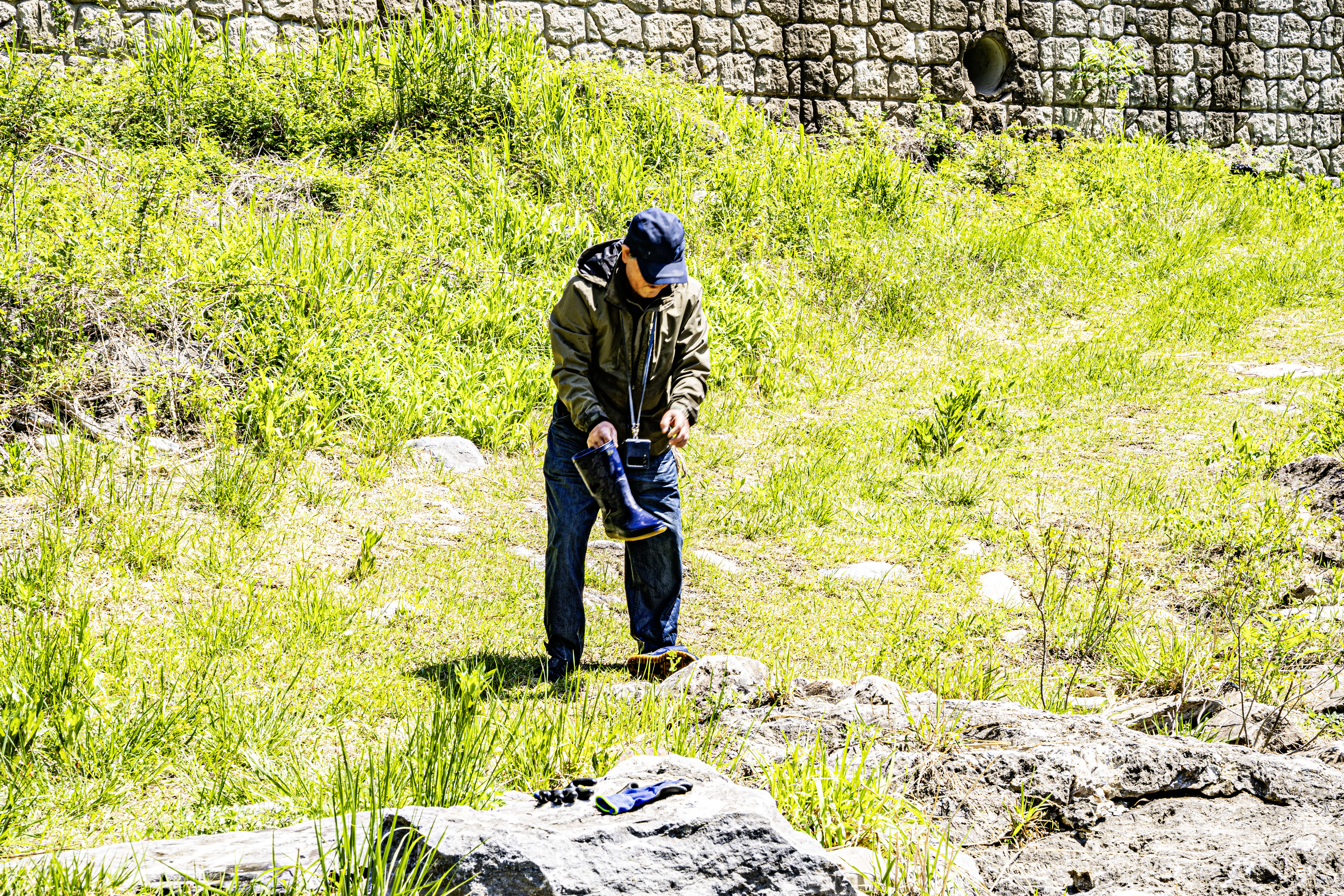 급물살을 건너고 땅속에 박힌 여명석을 찾아 강 바닥을 헤맨다