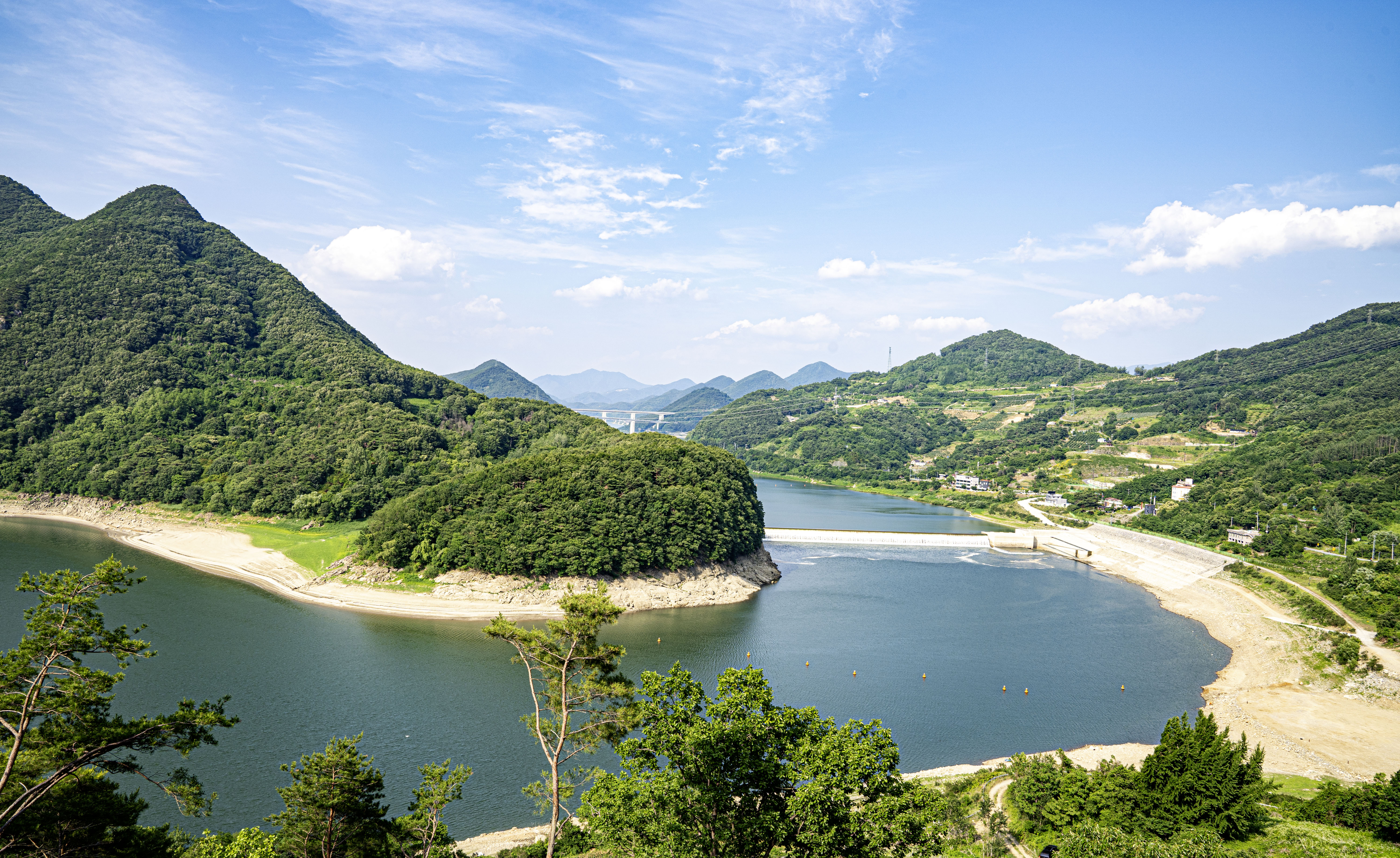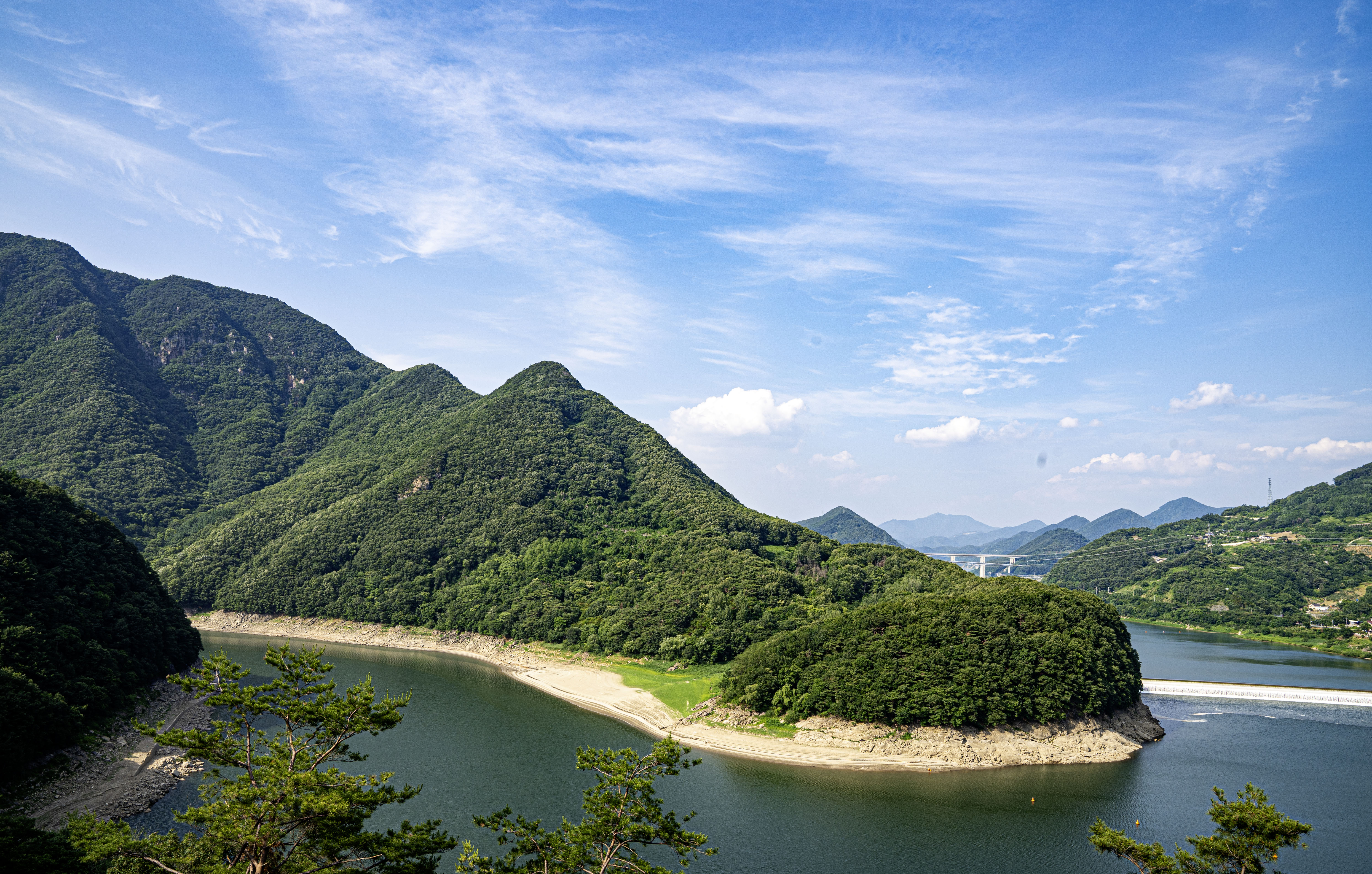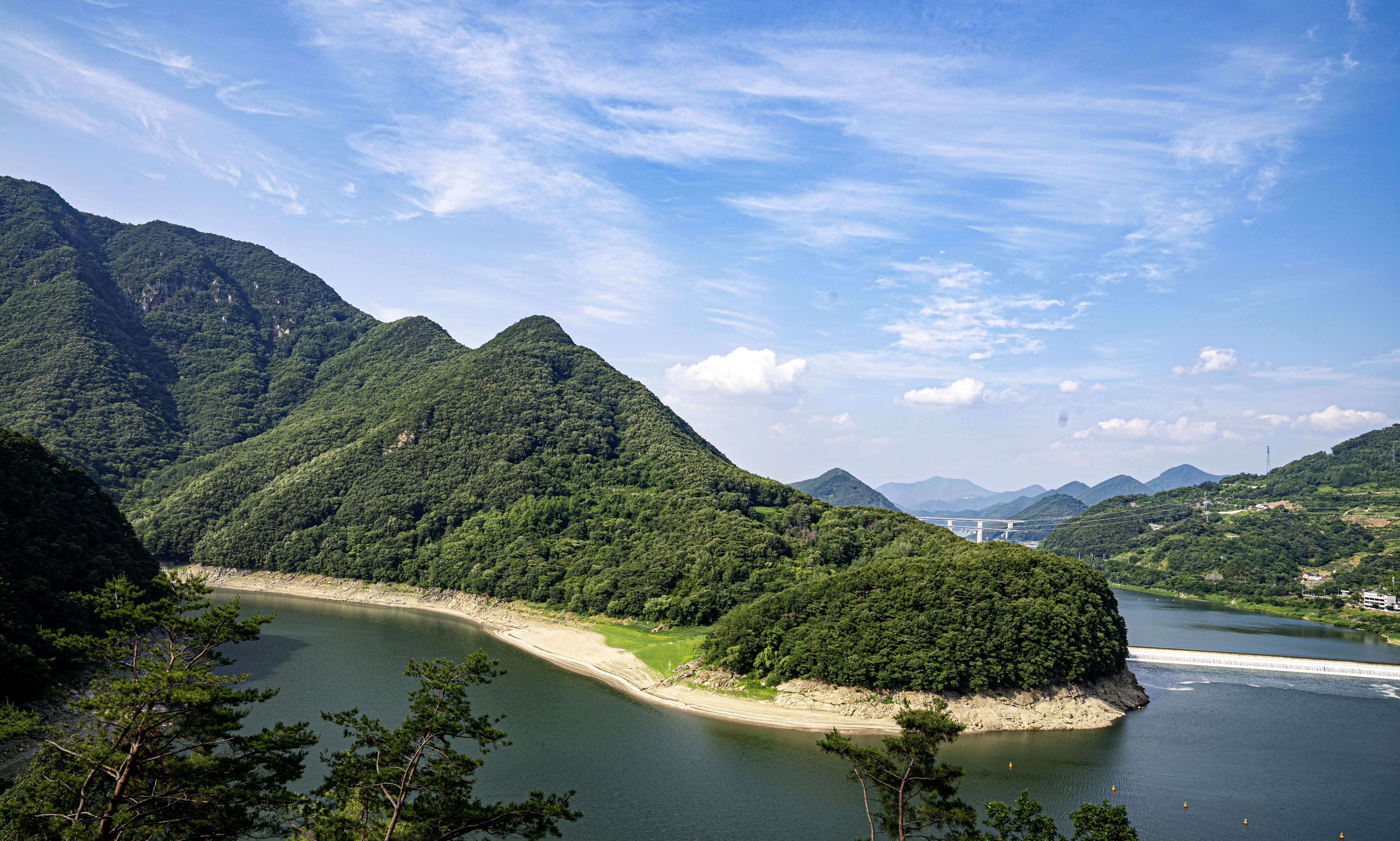 멀리에 소백준령이 한반도 허리를 드러내고 있다