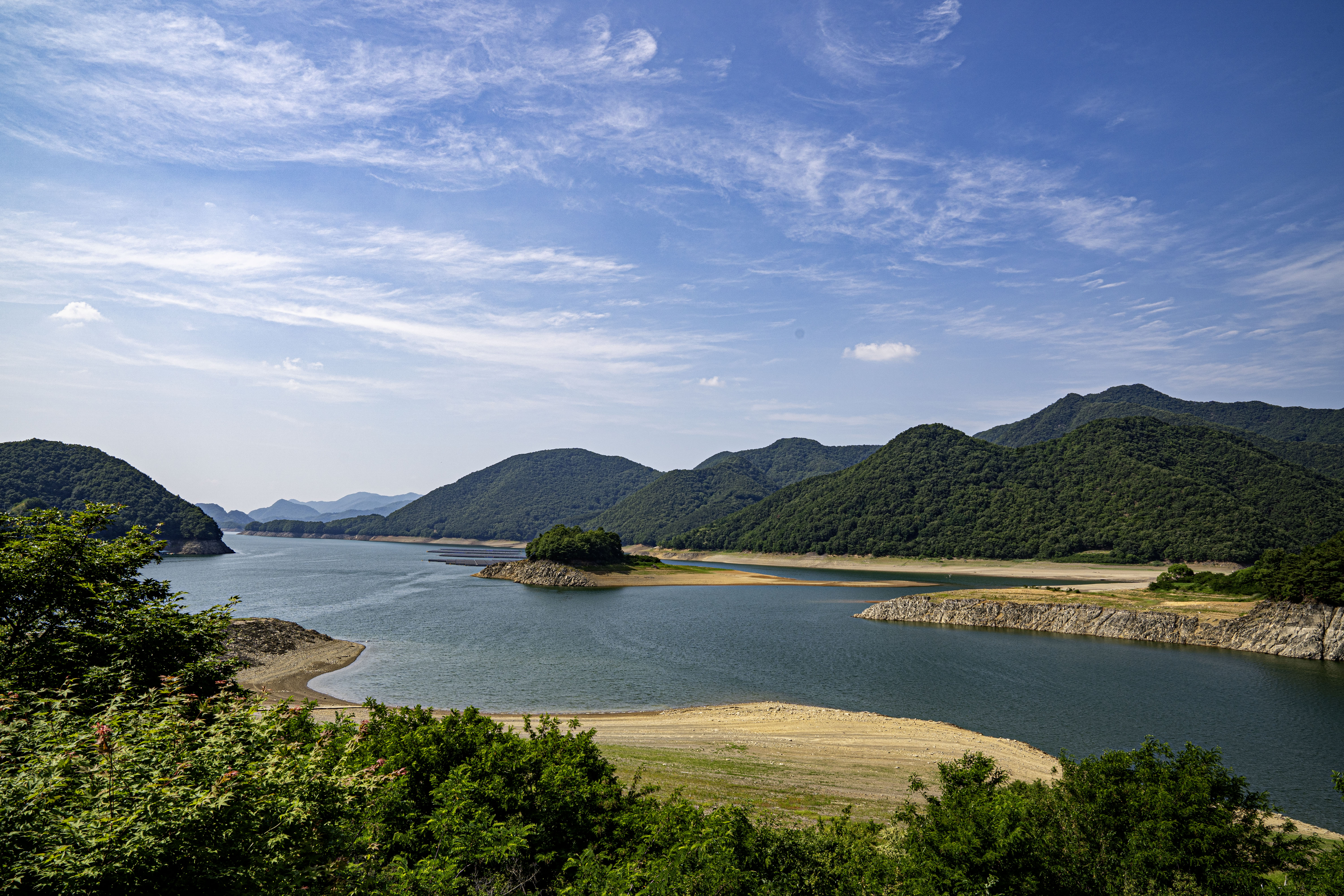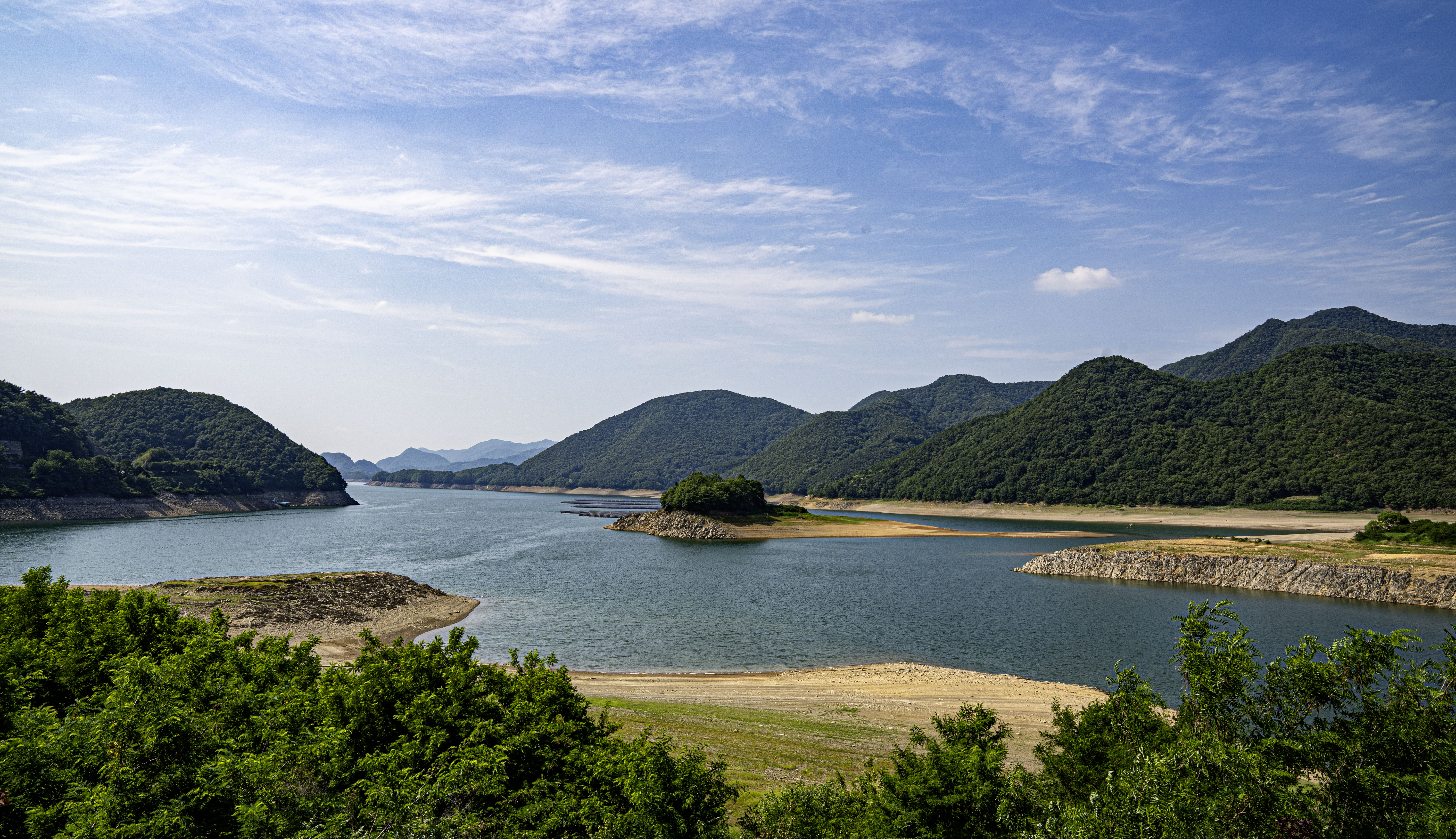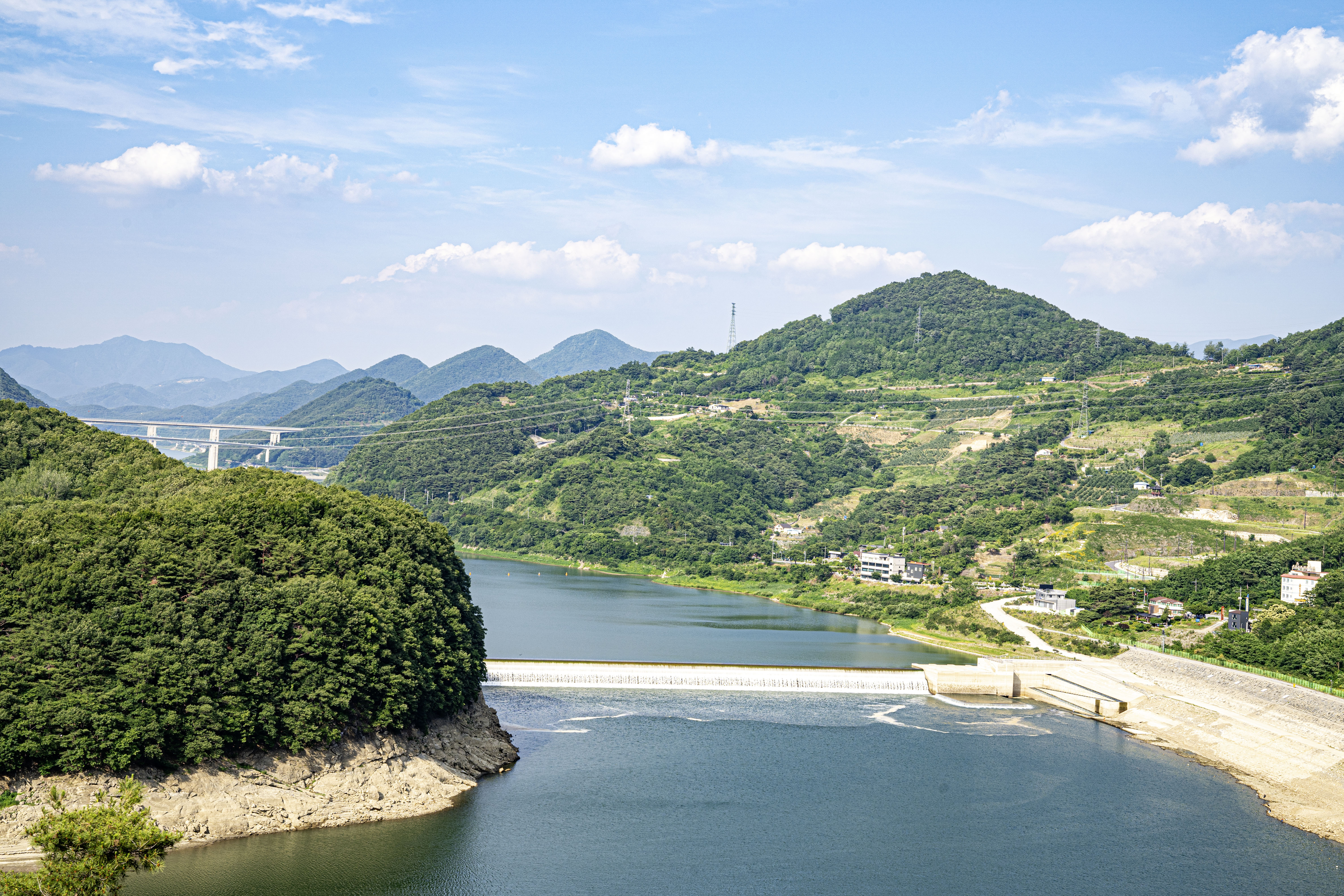 멀리에 소백준령이 한반도 허리를 드러내고 있다