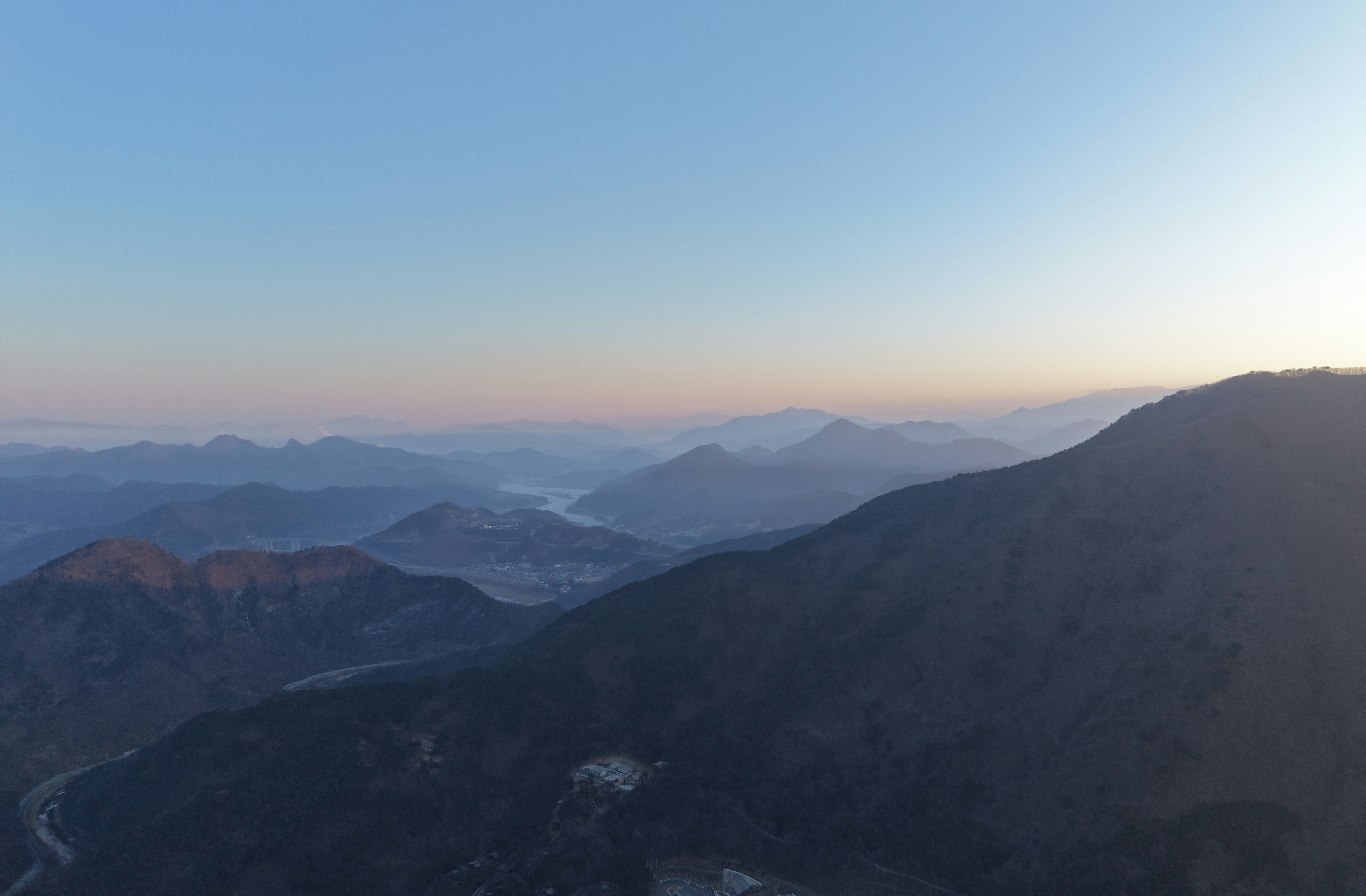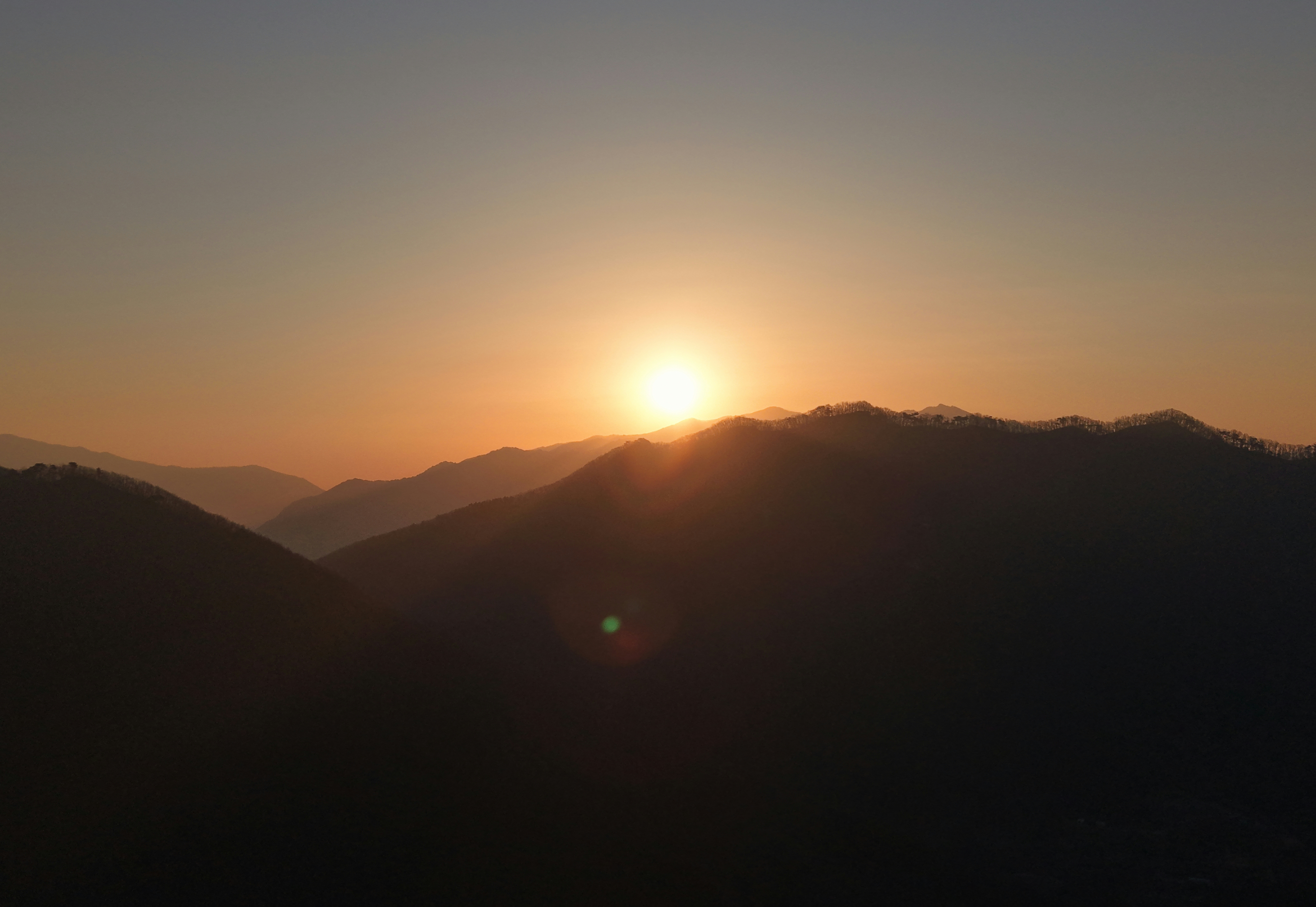 산 넘어 떠오르는 설날 아침 해를 드론으로 잡다