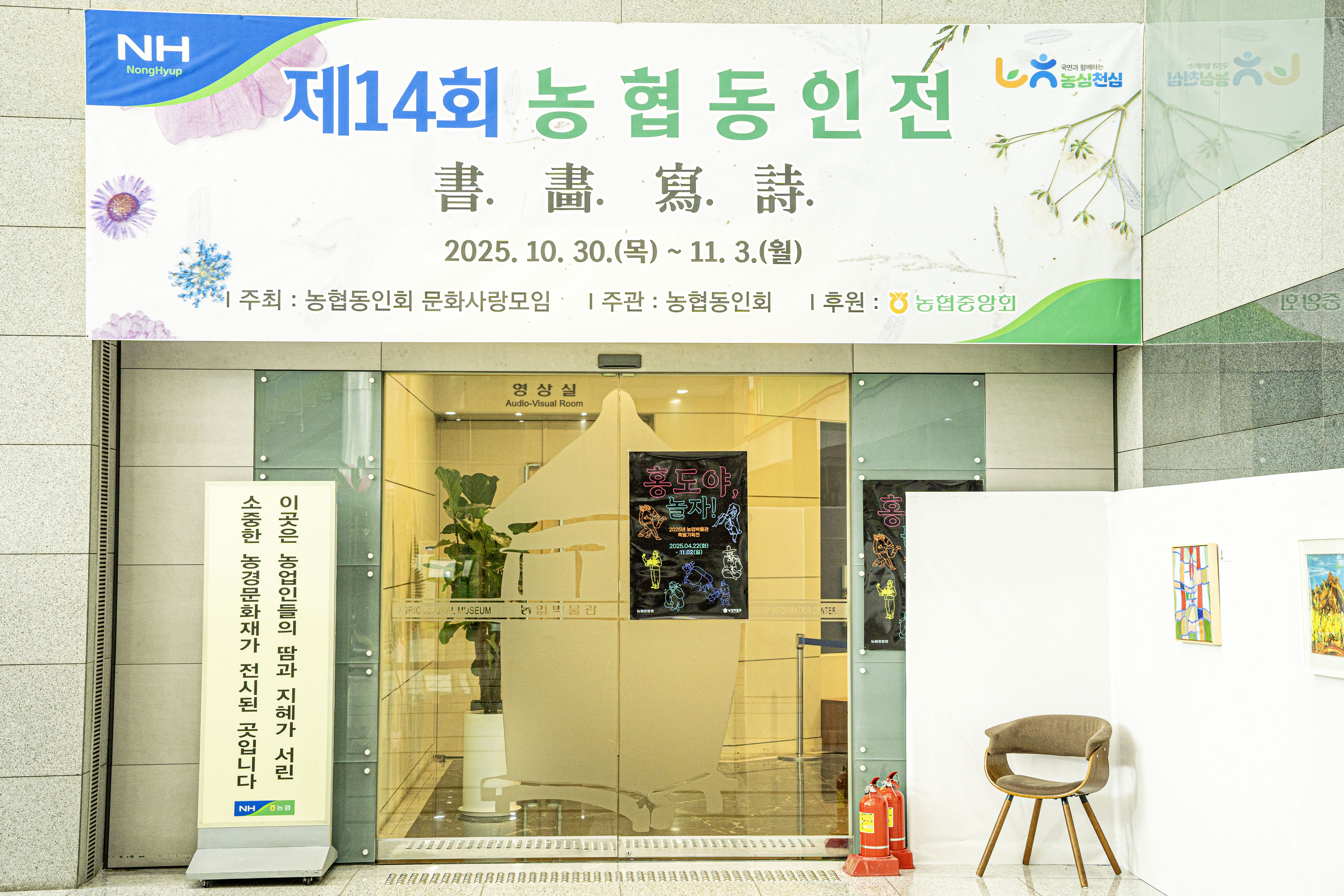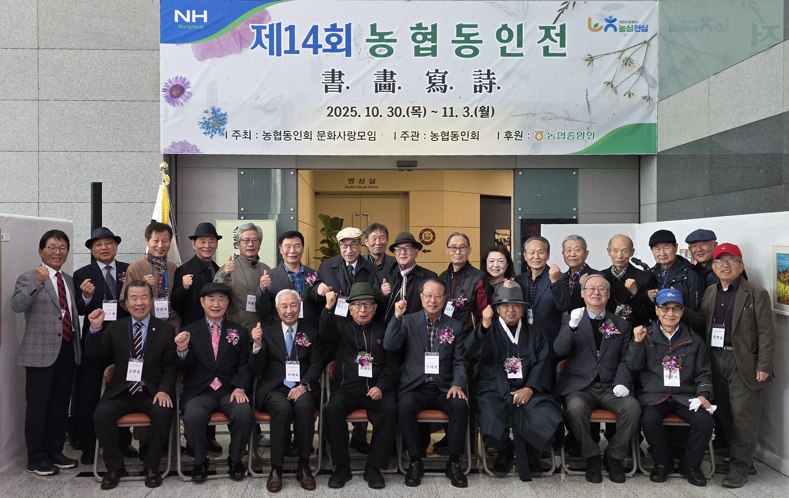 2025 제14회 농협동인전 書畵寫詩 제14회 문화사랑 농협동인전 書畵寫詩 2025년 농협동인 미수잔치(88세수)를 축하하는 문화사랑 동인전이 서예, 미술, 사진, 시분과별로 정진해온 작품을 모아 전시회가 열리고 있다농협에 바쳐온 평생 미수동인들의 삶은 그 자체가 그들이 펴낸 '농협론'이라는 축시는 K-Cooperation의 성장 발전된 모습으로 세계속에 우뚝하다 ㅇ 전시일정 : 2025. 10. 30 ~11. 3ㅇ 미수잔치 : 2025. 11. 3 11:00 본부 강당ㅇ 전시장소 : 농협중앙회 본관 1층 로비ㅇ 주관 : 농협중앙회 문화사랑 모임ㅇ 주최 : 농협동인회ㅇ 후원 : 농협중앙회 농협 동인 2025.10.30